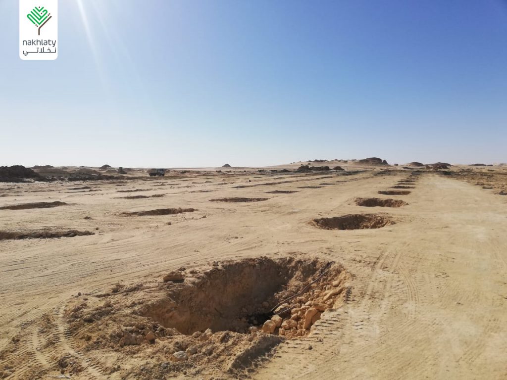 استعدادات تجري على قدم وساق في مشروع نخلاتي لبداية التجهيزات الخاصة بموسم زراعة النخيل القادم «أبريل 2020»، والتي تشمل أعمال حفر الجور ومد خطوط الري وغيرها من تجهيزات الأرض. إنجازات زراعة النخيل في موسم أبريل الماضي وكان موسم أبريل الماضي قد توج بالنجاح، بعد الانتهاء من زراعة 48 فدان من إجمالي مساحة المشروع.